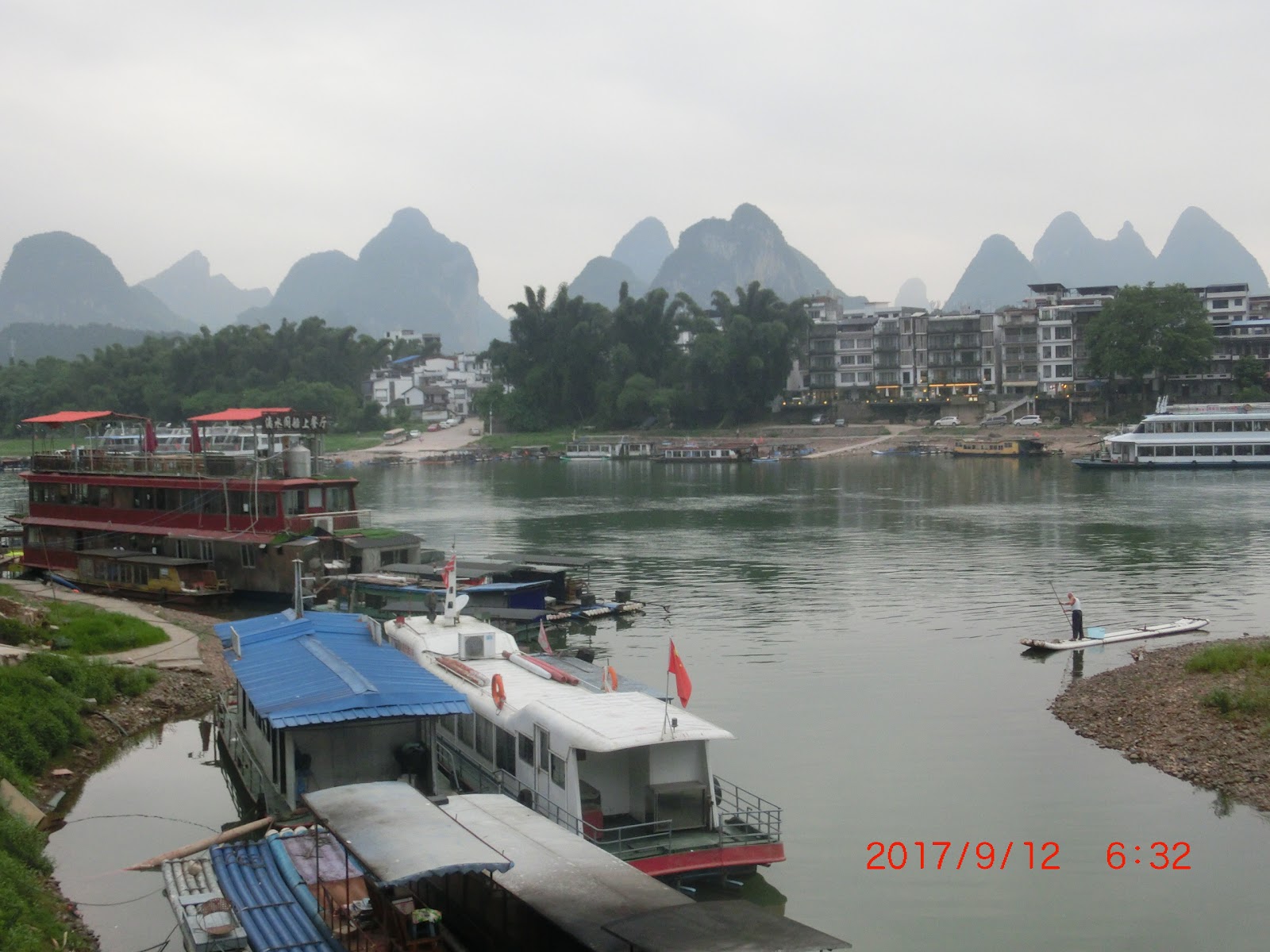 到漓江畔的江景酒家露台 (沒有上鎖,可以進入) 映日出