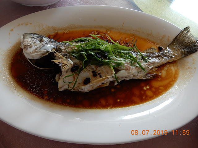1140 到新東飯店享用 ”潮汕風味水晶雞魚蝦蟹鮑魚宴”,菜色有︰白菜仔海鮮湯、水晶雞、燒焗大鮑魚 (每人一隻) 、蒸鱸魚、椒鹽蝦、豉椒炒蟹、魚皮餃、腐竹腩肉、白菜、鹵水蛋/豬腩肉等,豐富美味;威龍曾在鮜門的餐廳 (通常在 “泰源酒家” ,菜色很一般) 用午膳20 多次,這頓午餐是最豐富美味、滿意的。10 位團友一圍,組合是6+3+1,其中有一位小朋友,大家都食得很斯文,更禮讓威龍先拍照才起筷。1245 離開。