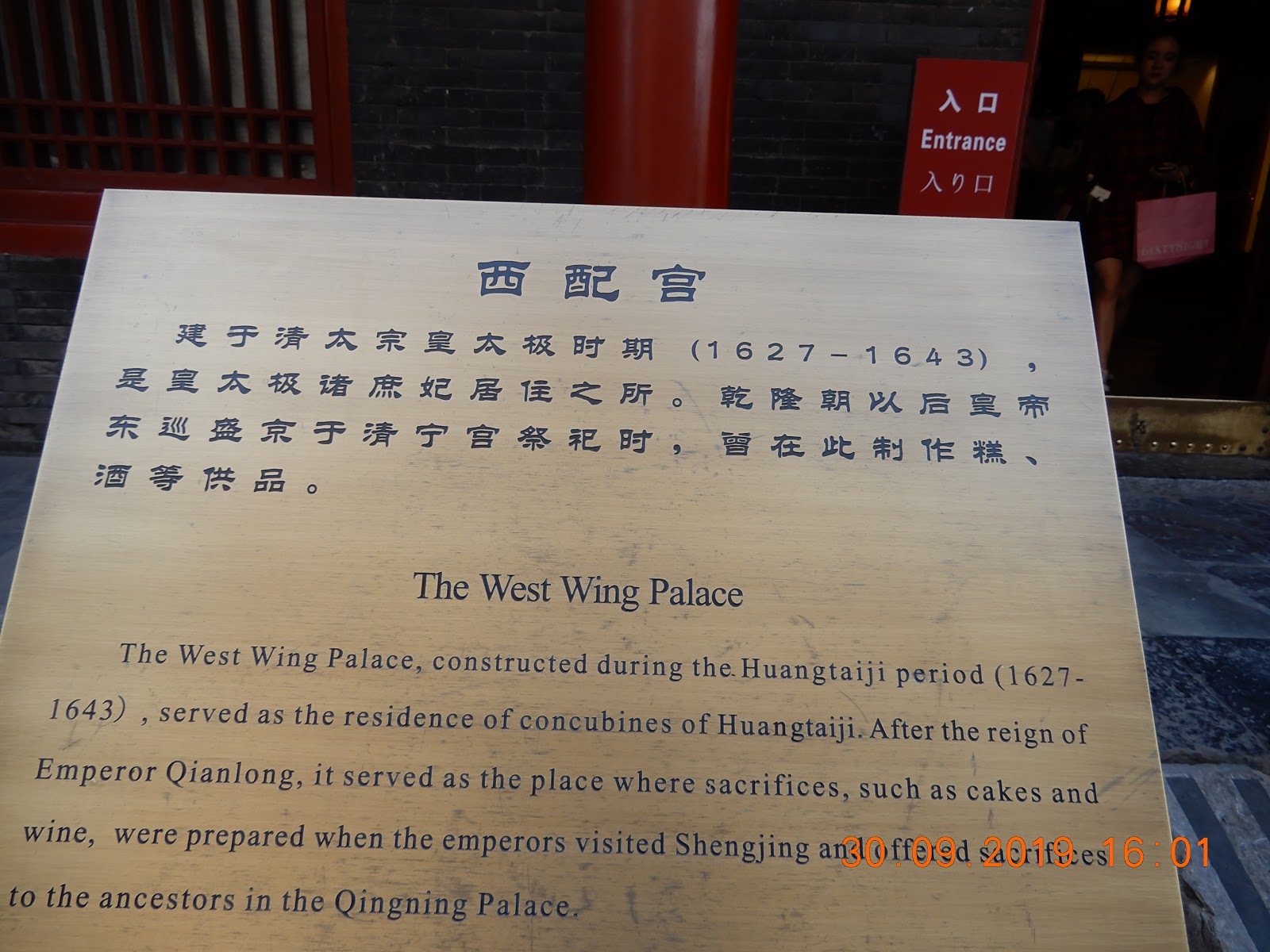 西路--戲臺、嘉蔭堂、文溯閣和仰熙齋等,於1782年建成,是清朝皇帝 "東巡" 盛京 (瀋陽) 時,讀書看戲和存放《四庫全書》的場所。1700 離開。
